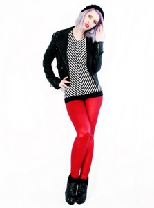 I design alot with black and white in my line Agoraphobix , I love mixing it with a bit of color for the perfect eye catching effect, its so classy and yet playful. you can actually pair a black and white item with your fave color - mixed in as a pair of colored wet look leggings, a belt, or even in a detail in the design. its a fail proof schick styling option!
